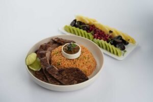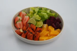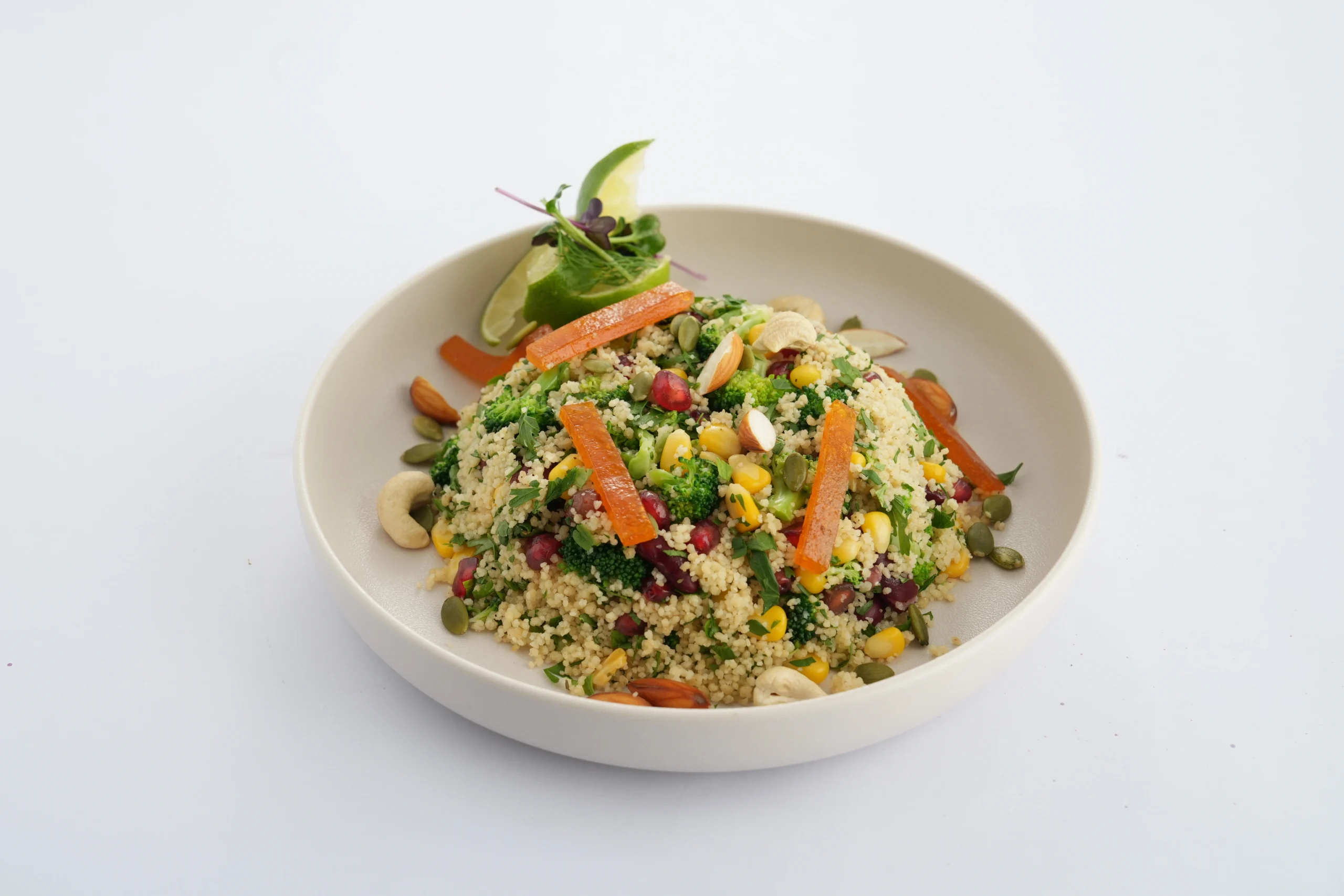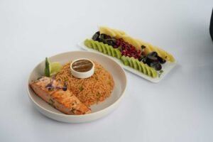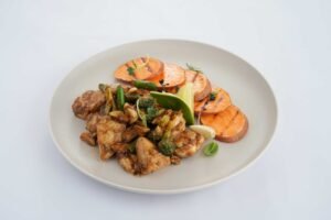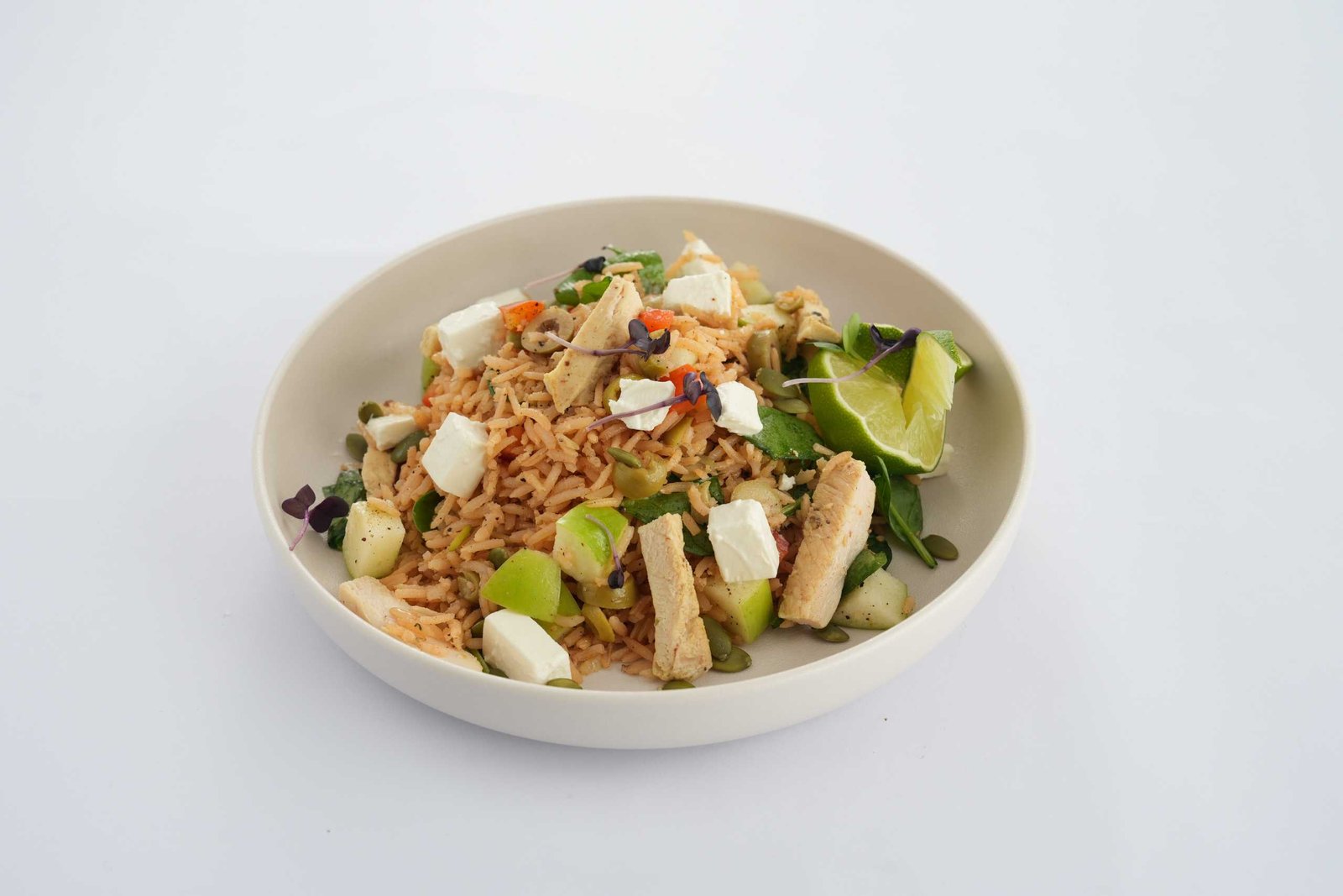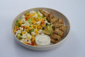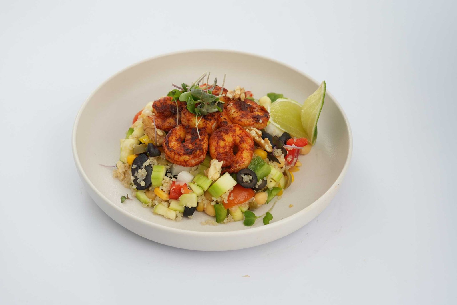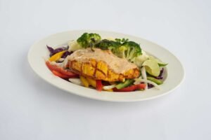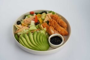 Food Menu Delicious Food Menu SandwichBurgersWrapsPastasFresh JuiceSaladSoupsBreak FastCombo MealsMain CourseSuper FoodSnacks Beef Burger Nrg: 449 kcal Prot: 26 g Fat: 22 g Carb: 36 g Classic Beef Burger Nrg: 476 kcal Prot: 29 g Fat: 24 g Carb: 35 g Crunchy Chicken Burger Nrg: 400 kcal Prot: 28 g Fat: 13 g Carb: 43 g Chicken Steak Burger Nrg: 341 kcal Prot: 31 g Fat: 8 g Carb: 37 g Beyond Beef Burger Nrg: 331 kcal Prot: 15 g Fat: 13 g Carb: 38 g Spicy Chicken Quesadilla Nrg: 289 kcal Prot: 26 g Fat: 28 g Carb: 8 g Mozzarella Quesadilla Chicken Nrg: 363 kcal Prot: 32 g Fat: 11 g Carb: 35 g Chicken Steak Quesadilla Nrg: 448 kcal Prot: 30 g Fat: 11 g Carb: 40 g Pollo Kebab Croissant Nrg: 299kcal Prot: 31 g Fat: 6 g Carb: 15 g Spicy Chicken Fillet Nrg: 404kcal Prot: 28 g Fat: 13 g Carb: 42 g Frango Strips Nrg: 441 kcal Prot: 27 g Fat: 16 g Carb: 47 g Orange Chicken Ciabatta Nrg: 347 kcal Prot: 34 g Fat: 13 g Carb: 15 g Tasty Chicken Ciabatta Nrg: 429 kcal Prot: 29 g Fat: 8 g Carb: 44 g Mushroom Chicken Ciabatta Nrg: 361 kcal Prot: 41 g Fat: 12 g Carb: 45 g Pesto Turkey Ciabatta Nrg: 255 kcal Prot: 30 g Fat: 8 g Carb: 18 g Steak Cheesy Ciabatta Nrg: 303 kcal Prot: 36 g Fat: 12 g Carb: 30 g Avo Chicken Ciabatta Nrg: 411 kcal Prot: 40 g Fat: 14 g Carb: 23 g Avo Beef Steak Nrg: 299 kcal Prot: 37 g Fat: 12 g Carb: 15 g Cilantro Chicken Ciabatta Nrg: 412 kcal Prot: 52 g Fat: 16 g Carb: 33 g Cilantro Chicken Club Nrg: 410 kcal Prot: 50 g Fat: 16 g Carb: 30 g Classic Club Chicken Nrg: 458 kcal Prot: 30 g Fat: 11 g Carb: 58 g Cilantro Quesadilla Nrg: 289 kcal Prot: 26 g Fat: 8 g Carb: 26 g Supercharged Nrg: 254 kcal Prot: 5 g Fat: 8 g Carb: 32 g Pineapple Paradise Nrg: 180 kcal Prot: 6 g Fat: 0 g Carb: 23 g Pome-Carrot Twilight Nrg: 180 kcal Prot: 29 g Fat: 5 g Carb: 24 g Apricot Veggie Kuskus Salad Nrg: 257 kcal Prot: 7 g Fat: 12 g Carb: 35 g Fresh & Fruity Chicken Salad Nrg: 340 kcal Prot: 38 g Fat: 12 g Carb: 15 g Taboulah Salad Nrg: 153 kcal Prot: 6 g Fat: 2 g Carb: 28 g Caulicorn Salad Nrg: 291 kcal Prot: 38 g Fat: 9 g Carb: 15 g Fillet Mignon Beef Nrg: 457 kcal Prot: 38 g Fat: 25 g Carb: 20 g Californian Salmon Salad Nrg: 429 kcal Prot: 42 g Fat: 16 g Carb: 29 g Chicken Fiesta Salad Nrg: 396 kcal Prot: 43 g Fat: 15 g Carb: 24 g Balsamic Salmon Salad Nrg: 384 kcal Prot: 43 g Fat: 16 g Carb: 17 g Caesor Cherry Salad Nrg: 297 kcal Prot: 33 g Fat: 8 g Carb: 27 g Steamed Veggie Salad Nrg: 326 kcal Prot: 42 g Fat: 12 g Carb: 13 g Citrus Shrimp Quinoa Salad Nrg: 355 kcal Prot: 38 g Fat: 9 g Carb: 33 g Crispy Fattoush Salad Nrg: 420 kcal Prot: 42 g Fat: 20 g Carb: 28 g Mexican Shrimp Salad Nrg: 350 kcal Prot: 30 g Fat: 8 g Carb: 8 g Protien Packed Salmon Nrg: 297 kcal Prot: 31 g Fat: 13 g Carb: 13 g White Wave Fish Salad Nrg: 291 kcal Prot: 41 g Fat: 10 g Carb: 9 g Salmon Carrot Salad Nrg: 400 kcal Prot: 40 g Fat: 10 g Carb: 20 g Balsamic Avo Quinoa Salad Nrg: 278 kcal Prot: 14 g Fat: 11 g Carb: 36 g Tuna Fusilli Salad Nrg: 380 kcal Prot: 40 g Fat: 10 g Carb: 25 g Lemon Pollo Quinoa Salad Nrg: 358 kcal Prot: 39 g Fat: 9 g Carb: 30 g Protein Cobb Salad Nrg: 472 kcal Prot: 39 g Fat: 9 g Carb: 12 g Smoked Tuna Wrap Nrg: 288 kcal Prot: 39 g Fat: 5 g Carb: 15 g Chicken Shawarma Nrg: 307 kcal Prot: 38 g Fat: 6 g Carb: 17 g Crispy Twister Chicken Nrg: 402 kcal Prot: 30 g Fat: 15 g Carb: 37 g Feta Chicken Wrap Nrg: 322 kcal Prot: 50 g Fat: 7 g Carb: 15 g Basil Leafy Chicken Nrg: 300 kcal Prot: 38 g Fat: 5 g Carb: 20 g Spicy Chicken Wrap Nrg: 388 kcal Prot: 32 g Fat: 11 g Carb: 40 g Buritto Omelette Nrg: 388 kcal Prot: 19 g Fat: 23 g Carb: 22 g Broccoli Seafood Pasta Nrg: 501 kcal Prot: 41 g Fat: 19 g Carb: 44 g Brown Penne Chicken Nrg: 497 kcal Prot: 43 g Fat: 14 g Carb: 48 g Taco Chicken Pasta Nrg: 520 kcal Prot: 41 g Fat: 17 g Carb: 50 g Basil Farfalle Chicken Nrg: 475 kcal Prot: 42 g Fat: 36 g Carb: 30 g Fusilli Pasta Chicken Nrg: 517 kcal Prot: 44 g Fat: 15 g Carb: 55 g Basil Salmon Nrg: 480 kcal Prot: 46 g Fat: 15 g Carb: 50 g Jumbiri Veggie Pasta Nrg: 529 kcal Prot: 41 g Fat: 19 g Carb: 49 g Steamy Broccoli Shrimp Soup Nrg: 250 kcal Prot: 13 g Fat: 18 g Carb: 8 g Seafood Soup Nrg: 209 kcal Prot: 20 g Fat: 9 g Carb: 11 g Lentilha Blend Soup Nrg: 361 kcal Prot: 25 g Fat: 4 g Carb: 54 g Creamy Mushroom Soup Nrg: 311 kcal Prot: 7 g Fat: 18 g Carb: 31 g Sprouts Chicken Soup Nrg: 311 kcal Prot: 7 g Fat: 18 g Carb: 31 g Limey Avo Chicken Soup Nrg: 206 kcal Prot: 19 g Fat: 9 g Carb: 16 g Pan Berry Cake Nrg: 365 kcal Prot: 15 g Fat: 12 g Carb: 44 g Yogurt Egg Shakshuka Nrg: 315 kcal Prot: 40 g Fat: 16 g Carb: 33 g Granola Bowl Nrg: 400 kcal Prot: 10 g Fat: 8 g Carb: 70 g Mighty Delight Nrg: 420 kcal Prot: 23 g Fat: 19 g Carb: 31 g Mash Avocado Toast Nrg: 272 kcal Prot: 39 g Fat: 13 g Carb: 20 g Omelette Sandwich Nrg: 400 kcal Prot: 25 g Fat: 16 g Carb: 30 g Energy Bowl Nrg: 426 kcal Prot: 13 g Fat: 8 g Carb: 81 g Granola Bowl Nrg: 400 kcal Prot: 10 g Fat: 8g Carb: 70 g Coconut Chia Nrg: 450 kcal Prot: 09 g Fat: 20g Carb: 40 g Halloumi Sandwich Nrg: 313 kcal Prot: 16 g Fat: 12g Carb: 30 g Veggie Scramble Nrg: 360 kcal Prot: 17 g Fat: 20 g Carb: 28 g Cheesy Pizza Omelette Nrg: 410 kcal Prot: 23 g Fat: 22 g Carb: 30 g Fungi Royal Egg Nrg: 275 kcal Prot: 29 g Fat: 13 g Carb: 20 g Grill Salmon Combo Nrg: 630 kcal Prot: 48 g Fat: 16 g Carb: 71 g Grill Chicken Combo Nrg: 510 kcal Prot: 44 g Fat: 15 g Carb: 74 g Beef Steak Combo Nrg: 661 kcal Prot: 44 g Fat: 19 g Carb: 80 g Grill White Fish Combo Nrg: 464 kcal Prot: 48 g Fat: 3 g Carb: 59 g Ail Chicken & Sweetpotato Nrg: 400 kcal Prot: 49 g Fat: 21 g Carb: 35 g Chicken Stroganoff&rice Nrg: 509 kcal Prot: 50 g Fat: 19 g Carb: 38 g Red Pepper Chicken & Rice Nrg: 310 kcal Prot: 39 g Fat: 16 g Carb: 17 g Lemon Dill Salmon&rice Nrg: 418 kcal Prot: 41 g Fat: 21 g Carb: 20 g Chicken Kuskus Nrg: 490 kcal Prot: 53 g Fat: 21 g Carb: 50 g Thunder Shrimp & Rice Nrg: 427 kcal Prot: 37 g Fat: 7 g Carb: 43 g Salmon & Rice Nrg: 476 kcal Prot: 41 g Fat: 14 g Carb: 43 g Paprica Chicken & 